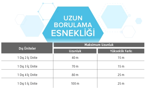 Alarko Flair, size dış ünitenin monte edilebileceği en ideal yeri seçme olanağı sunar. 100m’lik azami boru uzunluğu ve 25m’lik azami yükseklik farkı ile Alarko Flair, size dış ünitenin monte edilebileceği en ideal yeri seçme olanağı sunar.